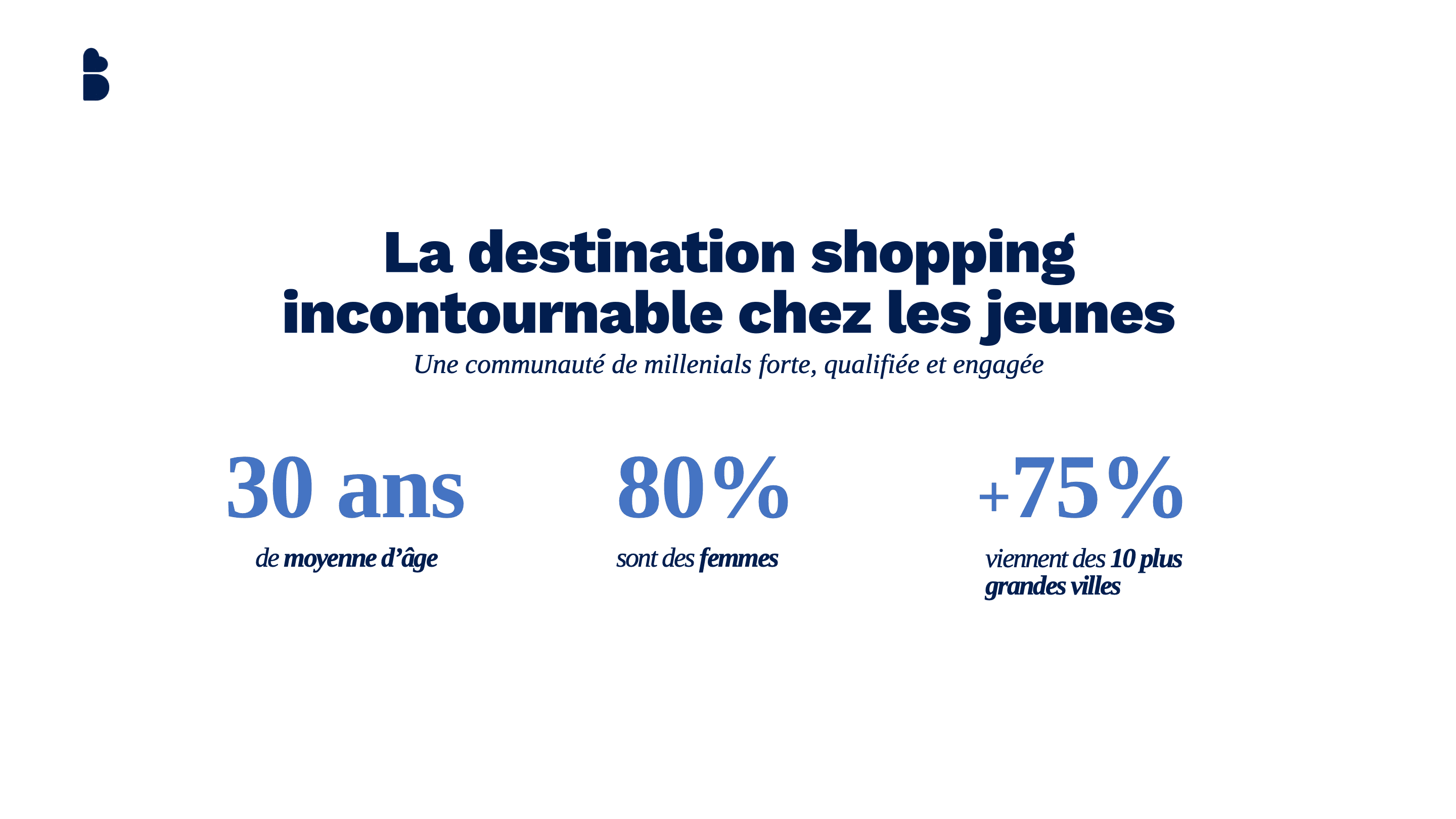Pour activer les millénials, il faut d'abord comprendre où ils se trouvent. The Bradery a construit une communauté de shoppers dont la moyenne d’âge est de 30 ans, composée à 80 % de femmes, principalement installées dans les grandes métropoles.